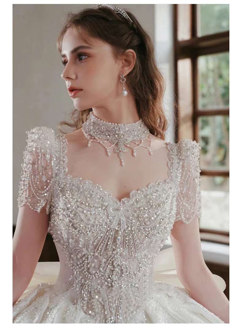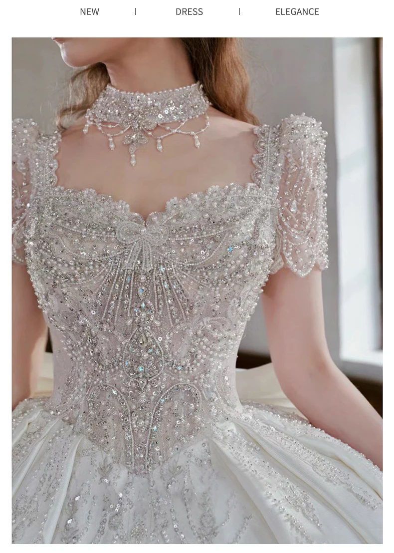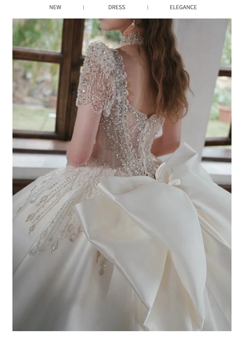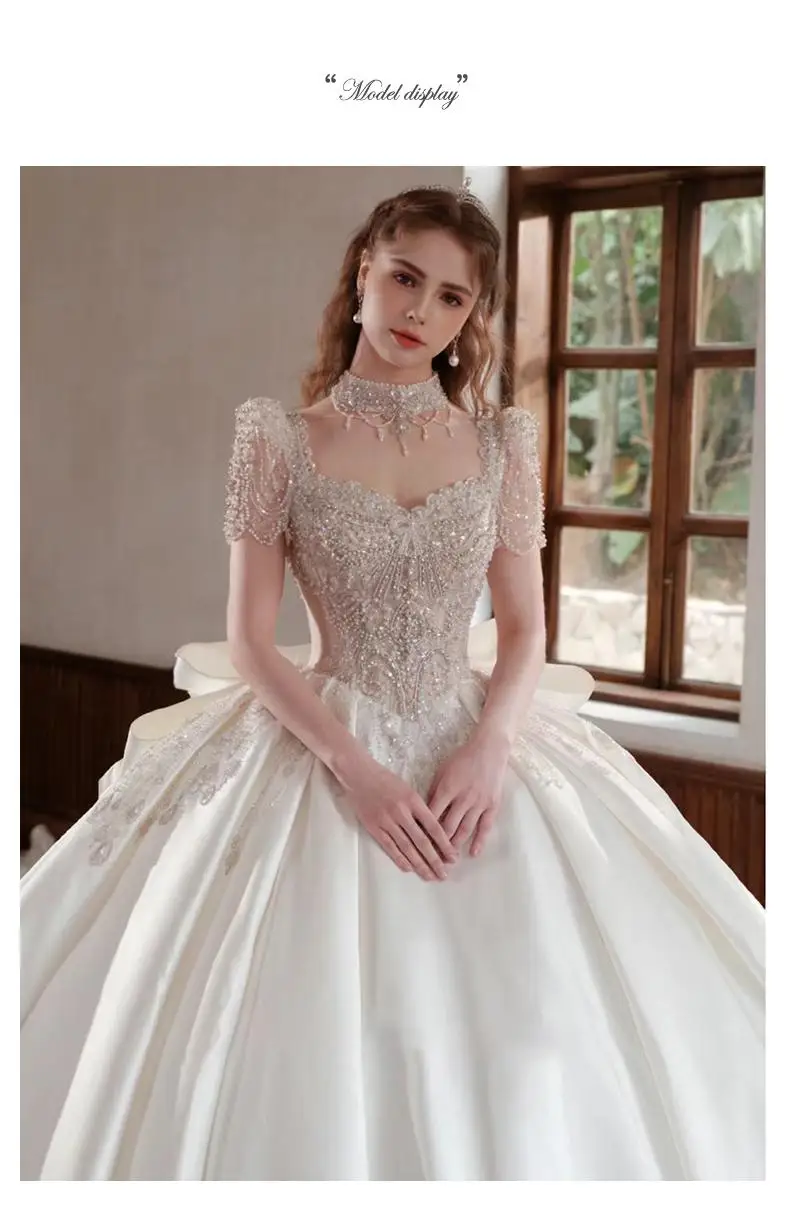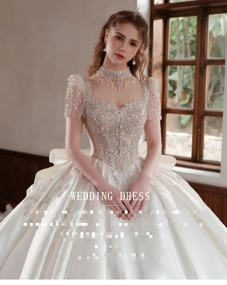 French Ivory Satin Wedding Dress New Bridal Ball Gown Luxury Beading Princess Vestido De Noiva Custom Big Size Floor Or Train